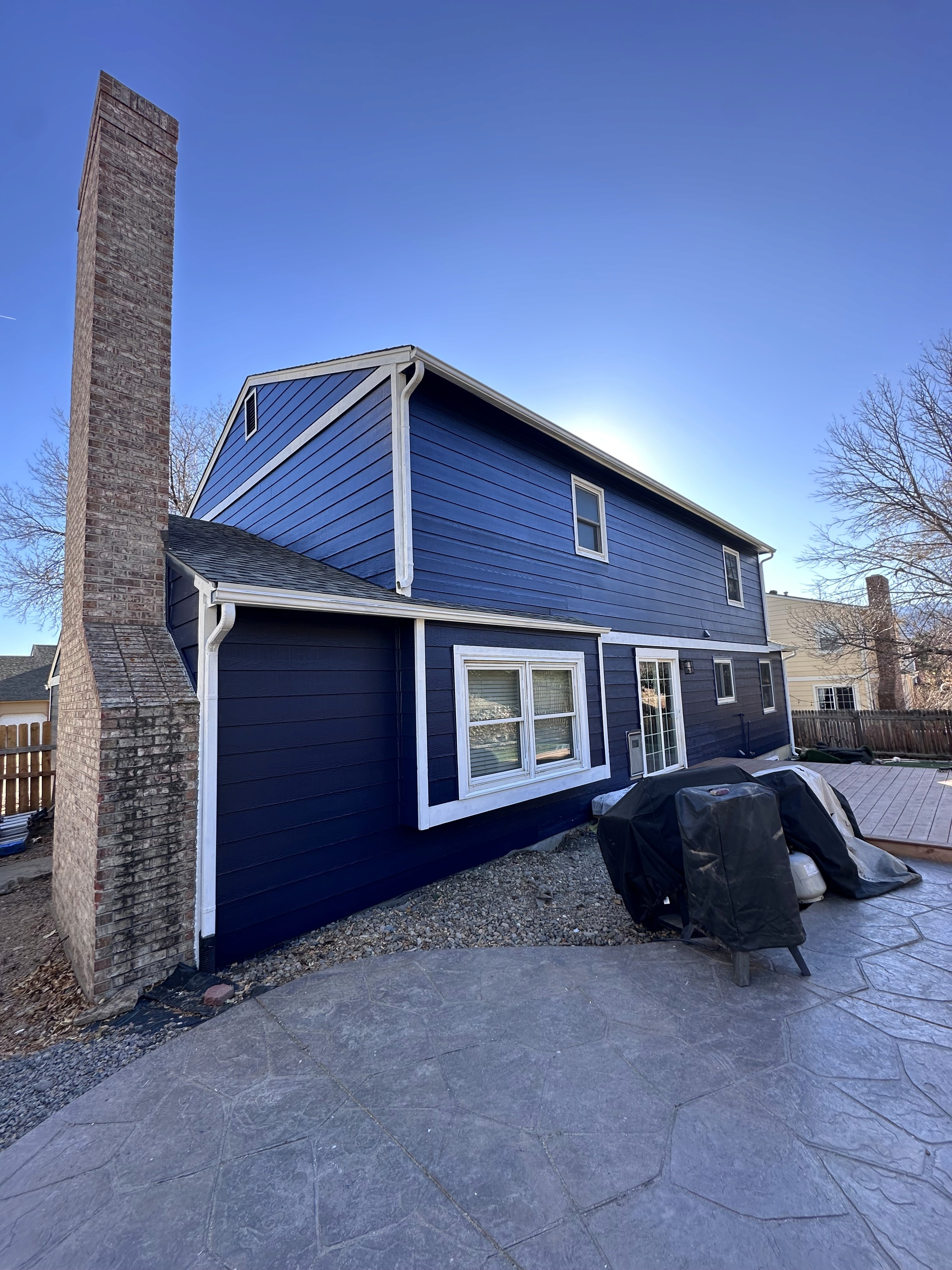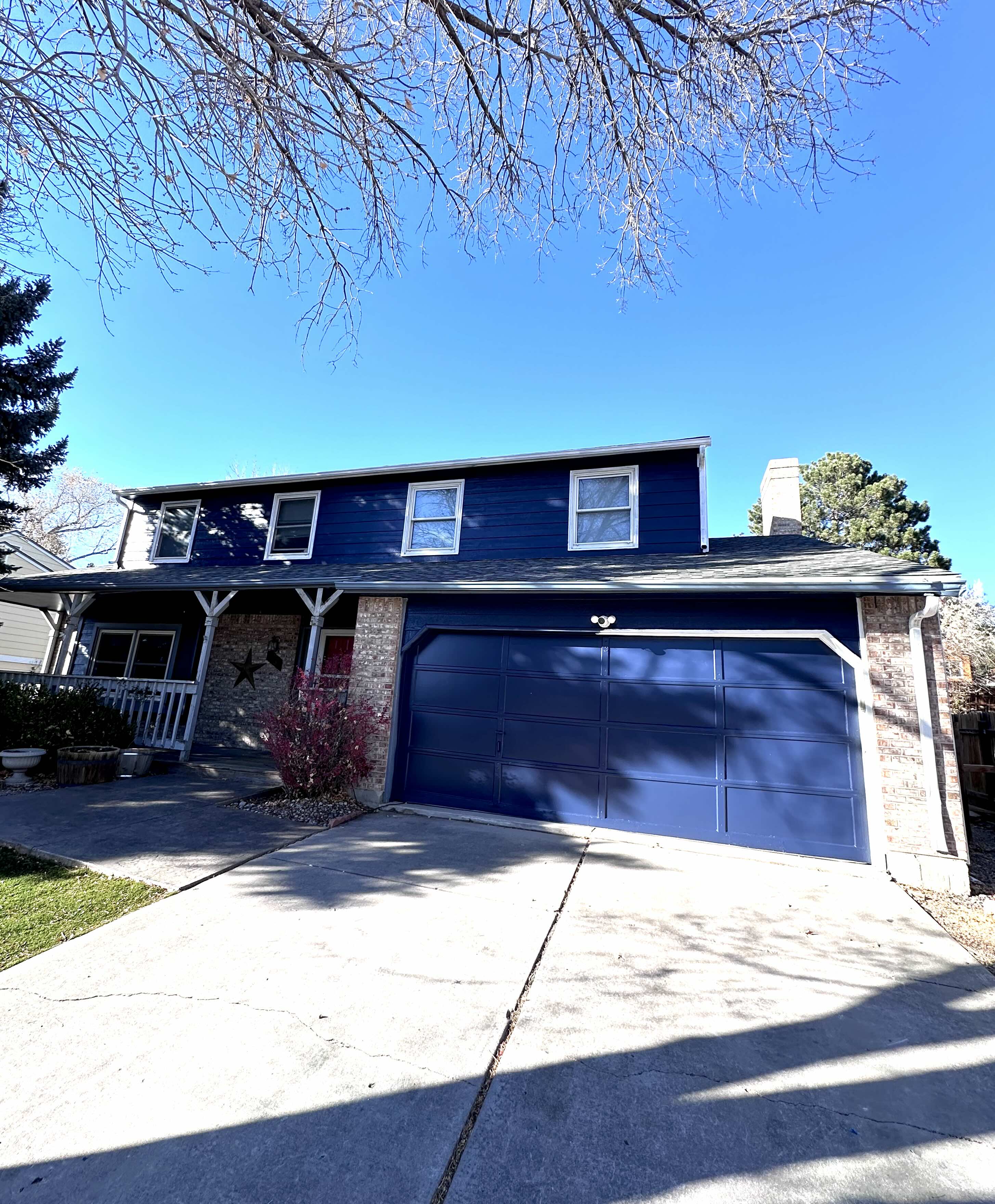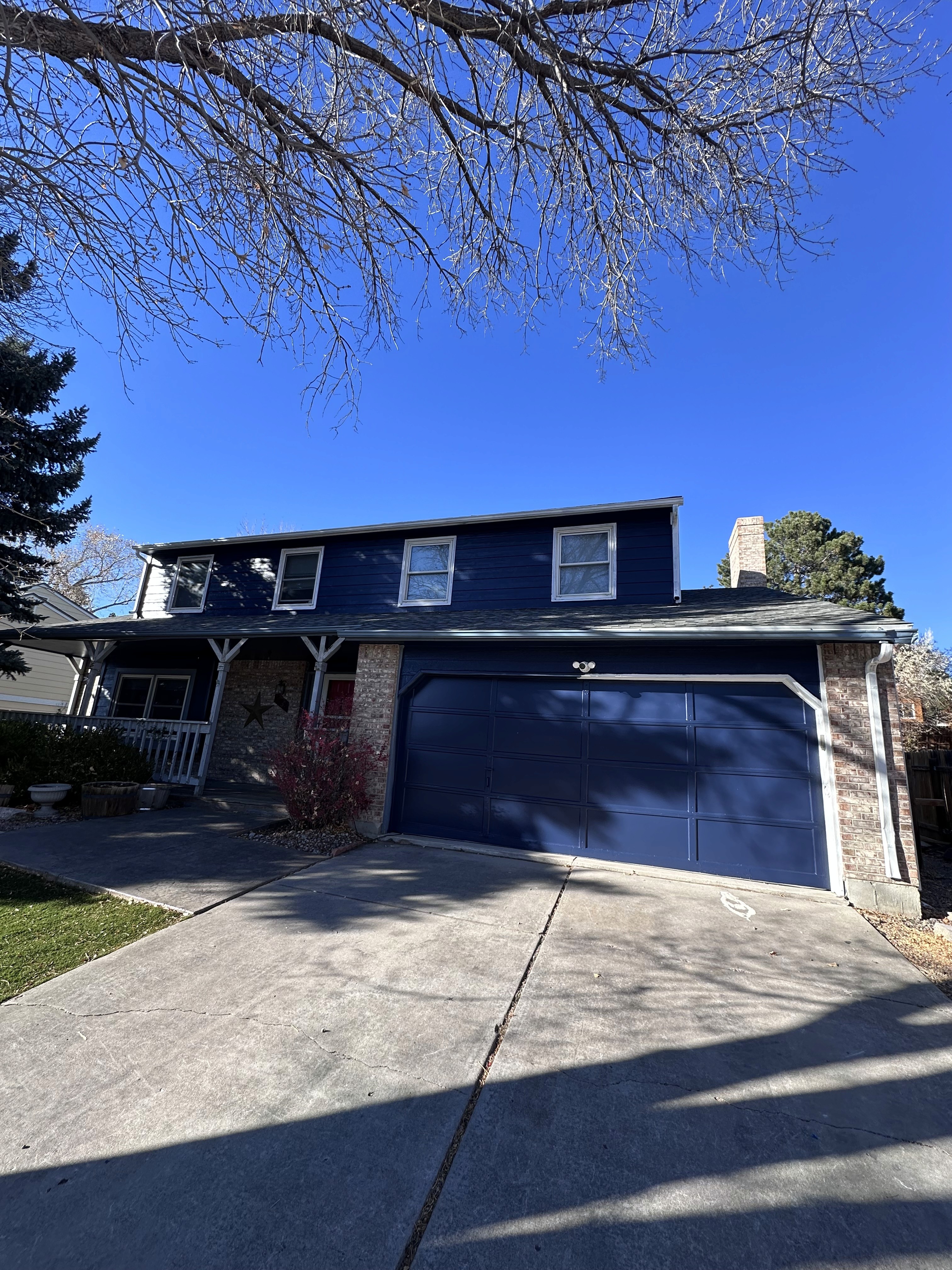 This two-story home received a full exterior repaint designed to boost curb appeal and protect the property from Colorado’s changing weather. We applied a rich navy blue finish to the siding and garage door, creating a bold, modern contrast against the existing brickwork and white trim. The result is a clean, cohesive exterior that feels updated while maintaining the home’s character. This exterior painting project not only enhanced visual appeal but also added long-term durability and value to the home.