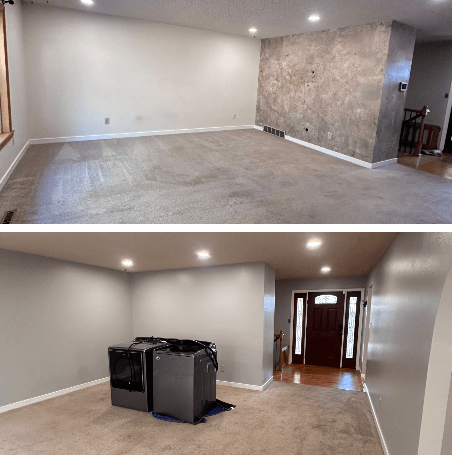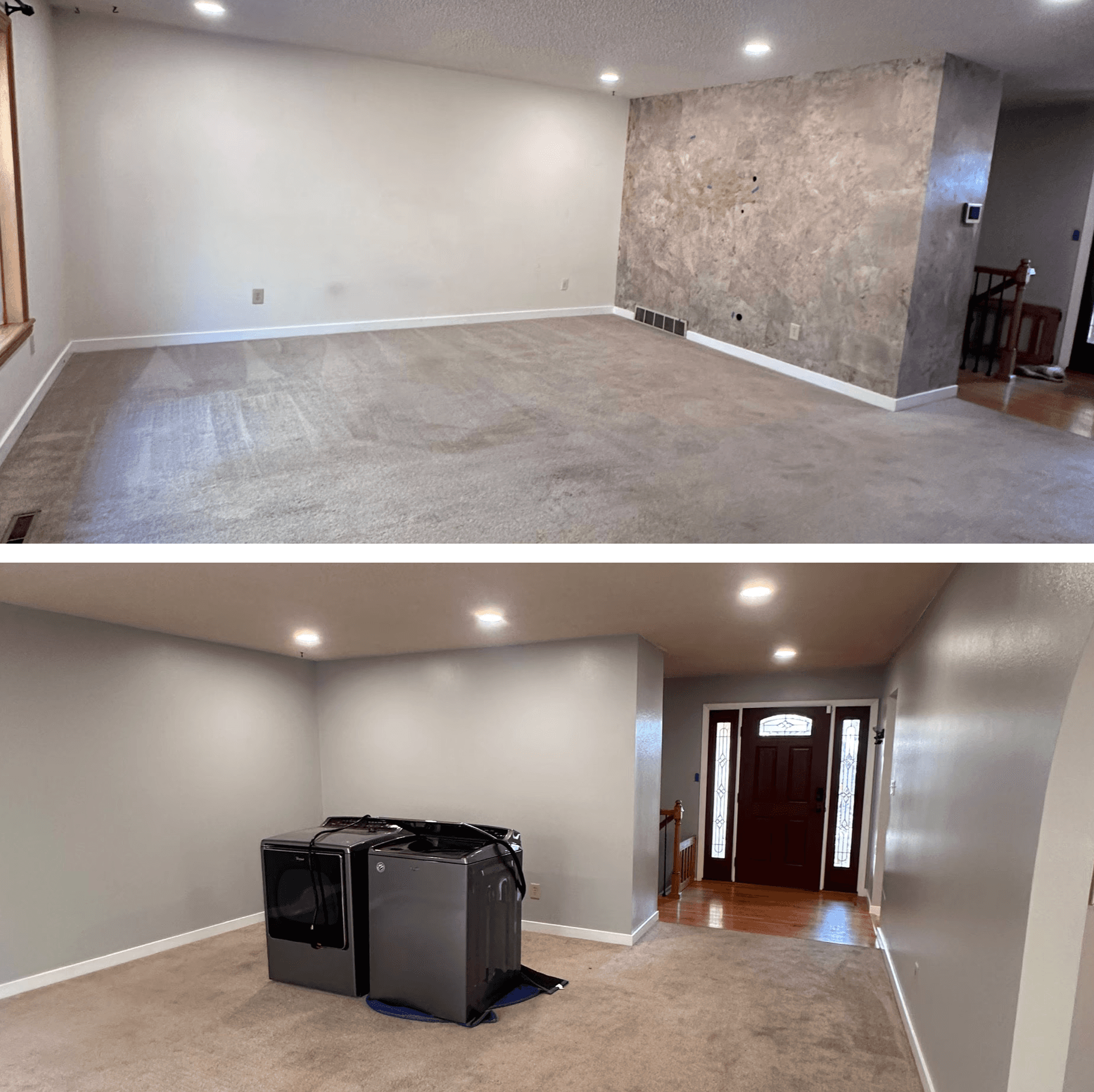 This living room was refreshed with professional interior painting to create a brighter, cleaner, and more modern look. Our team repaired wall imperfections, applied smooth, even coats, and ensured crisp edges for a flawless finish. The new neutral color palette enhanced natural light and made the space feel larger and more welcoming. This project showcases how expert interior painting can completely transform a home’s atmosphere while increasing its visual appeal and value.